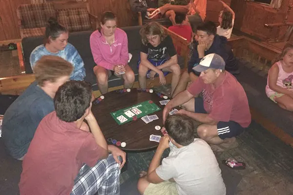 Forty years after our SUNY friend group started, our UAlbany family has grown quite a bit. Loving partners have come into the mix, along with a healthy crop of kids. Through the decades, our clan has come back to Dippikill more than 20 times. (So many times, in fact, that our now adult kids are also Dippikill fans — and fans of each other.) We started out by staying in Collins — dragging sleds of supplies down to the cottage at the end of the road. We mixed in stays at Garnett, Birches and Twin Brooks, followed by several years in the Farmhouse and White Pine. More recently, we've been partial to Julie's where the living is a bit more ... cushy.